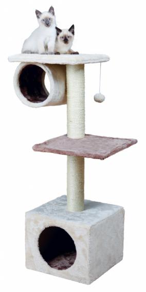 Домик для кошки Sina из плюша, столбики-сизаль, 106 см, кремовый/капучино.