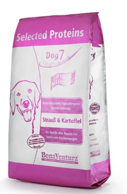 Некоторые продукты и питательные вещества могут вызывать у собак аллергические реакции такие как, например, проблемы с кожей, зуд, экзема, перхоть, прыщи, хронический понос или рвота. В таких случаях эффективно и долгосрочно питомцу можно помочь, обеспечив его кормом, содержащим единственный источник белка и углеводов («отобранный белок»).