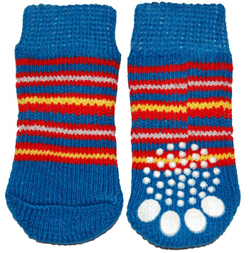 Мягкие и тёплые носочки для собак маленьких пород Blue Stripe согреют в холодное время года, а так же предотвратят разъезжание лапок на скользком полу, благодаря прорезиненной подошве. Носочки можно одевать после купания и с ботиночками. В комплекте 4 штуки.