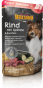 Сочное мясо в корме для собак Belcando FinestSelection приправлено отборными ингредиентами и бережно готовится отдельными порциями. Благодаря маслу чертополоха холодного отжима, рецептура пáучей обогащена полиненасыщенными жирными кислотами. Необычайно вкусный и легкоусвояемый, корм отлично подходит для чувствительных и разборчивых собак. При изготовлении корма не используется зерно, ароматизаторы, красители и консерванты.